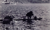 写真2は、琵琶湖の北部、今のマキノ町海津の昭和初期(1930年代)とその70年後、今の海津での、同じ場所同じアングルの比較写真だ。昭和初期の海津で洗濯をする女性たちも、衣服の裾がぬれないように、タライにはいって洗濯をしている。ワイン樽とタライという違いはあるものの、レマン湖の女性たちの洗濯と同じような工夫をしていることがわかる。琵琶湖とレマン湖の洗濯光景に共通する、裾をぬらさないという生活上の工夫が、直接に伝播したとは考えにくい。このような生活の知恵は、独立的に発生したといえるだろう。